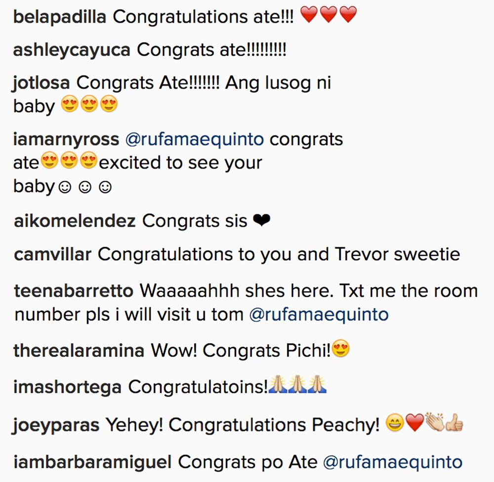 Bumuhos din ang pagbati mula sa mga showbiz friends ni Rufa Mae, ilan sa mga nagpaabot ng mensahe sa celebrity mom ang mga nakatrabaho niya sa Bubble Gang na sina Ara Mina, Aiko Melendez at Arny Ross.