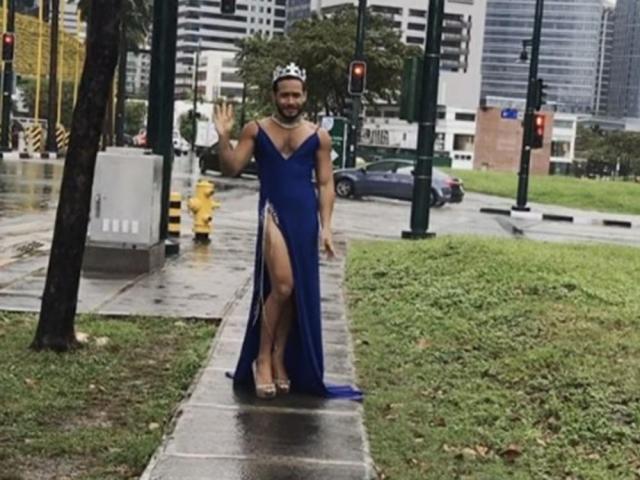 Sa kanyang Instagram account, ibinahagi ng Impostora star ang "The King of Catwalk Walks the Streets of BGC" video kung saan suot niya ang kanyang signature blue gown at red 7-inch heels.