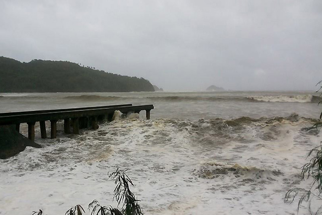 Yolanda spawns big waves in Catanduanes. Strong waves batter the wharf in Gigmoto, Catanduanes at the height of super typhoon Yolanda on Friday, November 8. The strongest storm on earth this year, Yolanda slammed into the Central Visayas region on November 8 forcing thousands of people to move to safer ground and storm shelters, cutting power and phone lines, and grounding air and sea transport. James Tan via YouScoop