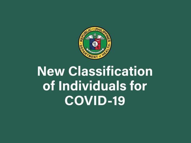 The Department of Health (DOH) introduced on April 11 the new classification of individuals with the Coronavirus Disease 2019 or COVID-19.