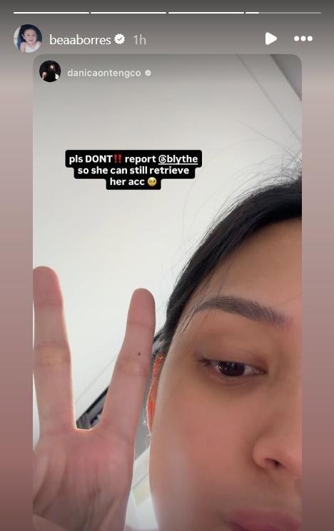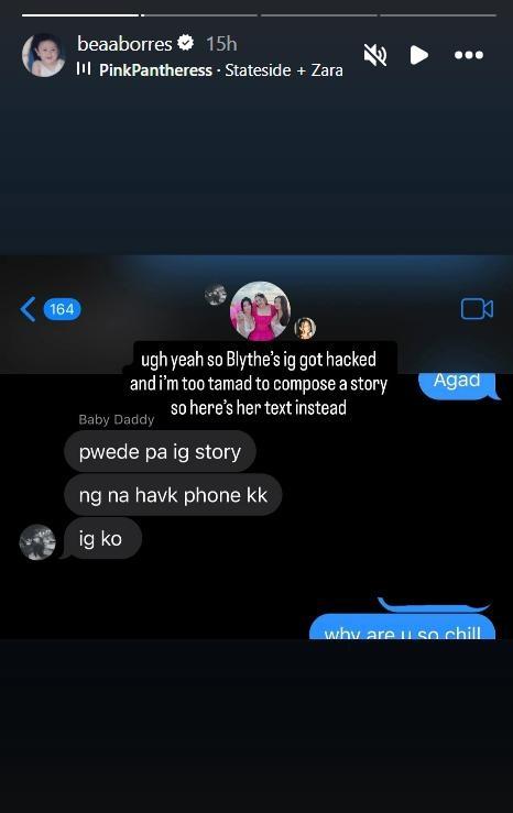 “Hi, everyone. Blythe's [Instagram] got hacked. [Please] don't interact na lang,” she wrote.