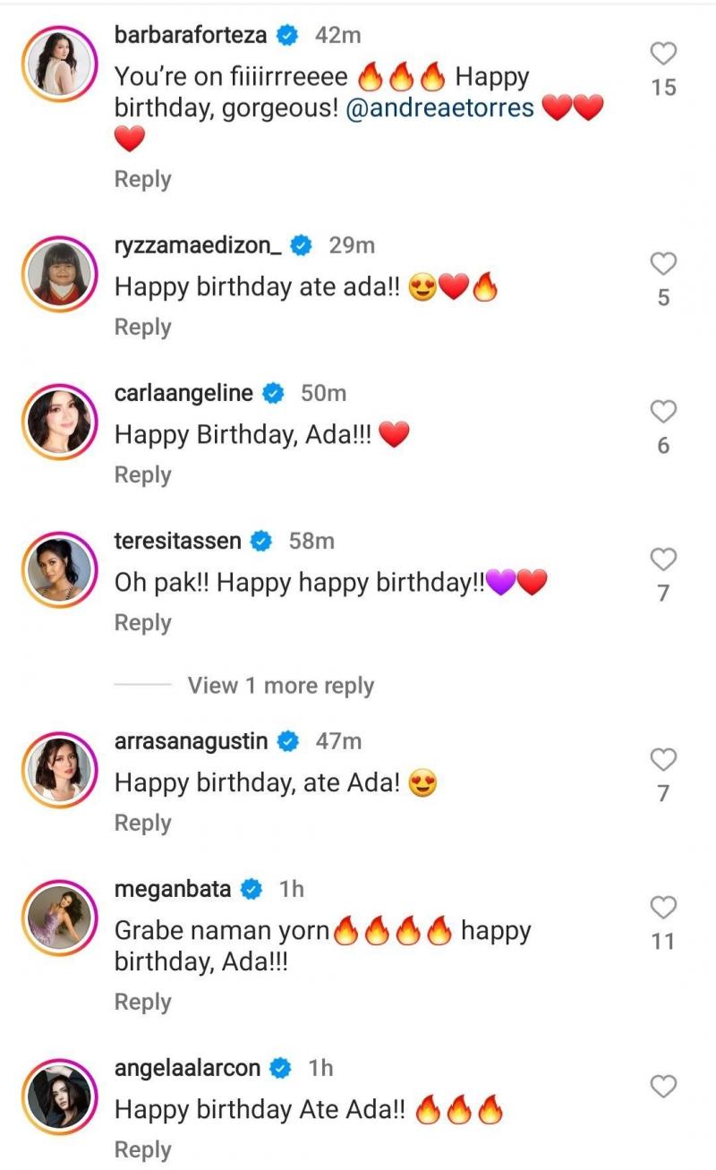In the comments section, some of her followers including her fellow Kapuso stars like Megan Young, Arra San Agustin, Winwyn Marquez, Carla Abellana, Angela Alarcon, and Barbie Forteza also sent their birthday greetings for Andrea.