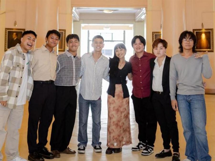(From left) Vhan Marco Molacruz, Ronnie Ramos, Miko Biong, Adrian Renz Espino, Joyce Ramos, John Pistol Carmen, Carlie Garcia Vitug, and Cedrick Labadia are excited to present their short film at The Manila Film Festival. / Courtesy: The Manila Film Festival