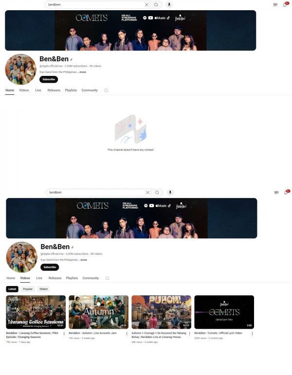 “However, we are still waiting on the response of our partners in addressing this matter, specifically for the Ben&Ben Youtube channel's Home page.”