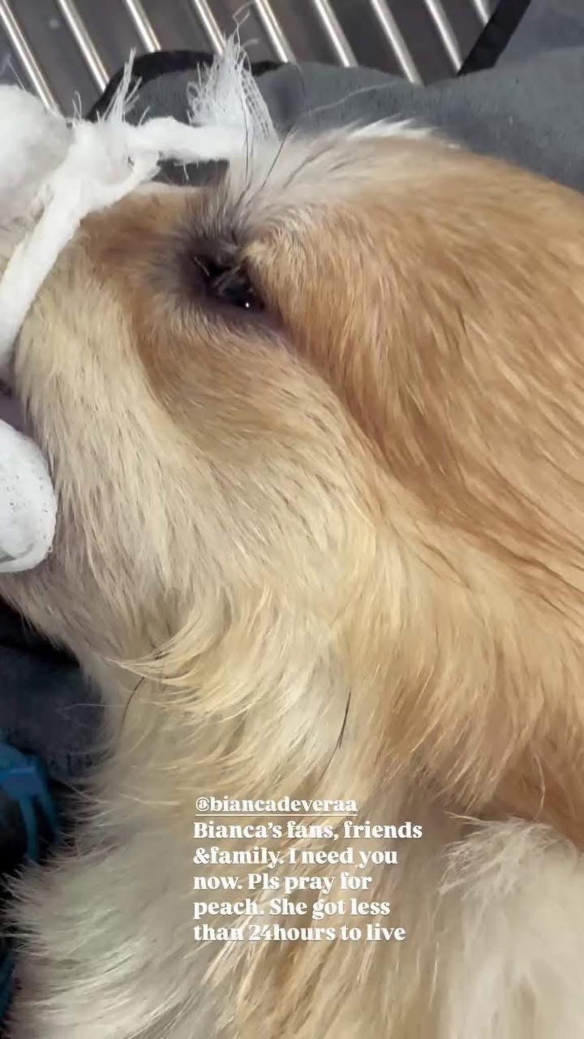 Sulat niya, “Bianca's fans, friends, and family, I need you now. Please pray for Peach. She got less than 24 hours to live.”