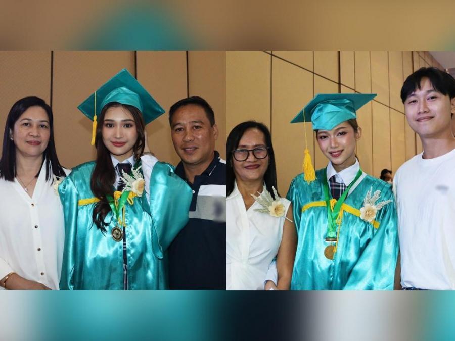 The two received their diplomas from the Japanese-Philippines Institute of Technologies, Training and Services Inc. after finishing the Humanities and Social Sciences (HUMSS) strand.