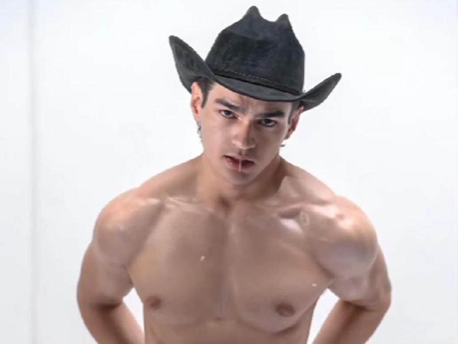 The former Open 24/7 star shared on his Instagram page last June 23 a short video clip for his shoot for Bench Body, wherein he was seen wearing a black hipster brief and a cowboy hat.