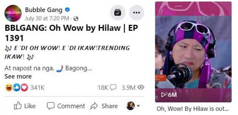 Since it premiered on the Bubble Gang episode last July 30, the parody of the OPM hit "Uhaw" from the band Dilaw has amassed millions of views on Facebook and TikTok.