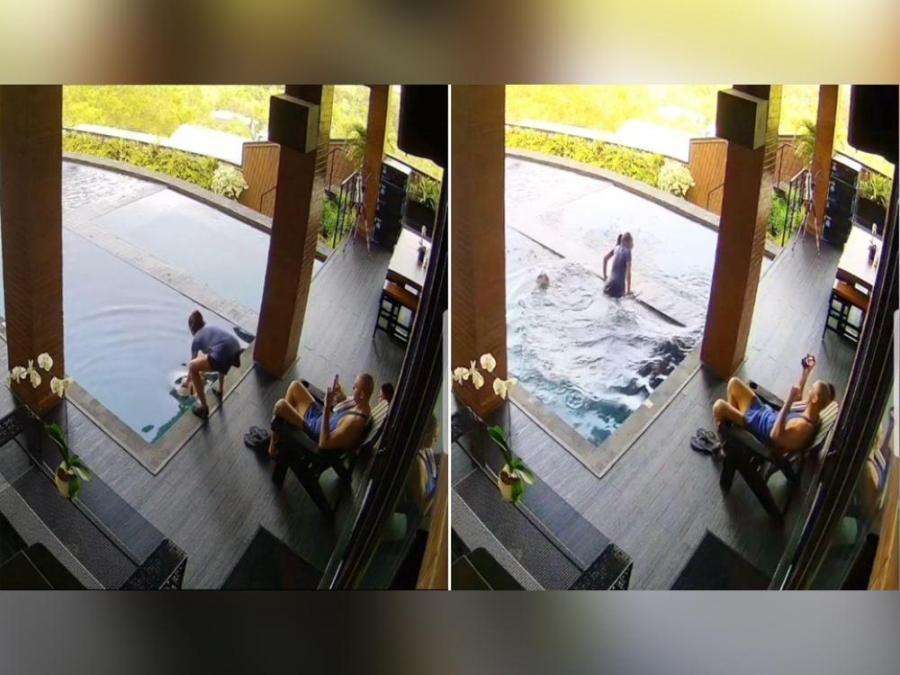 Doug Kramer pranks daughter Scarlett by pushing her into a pool