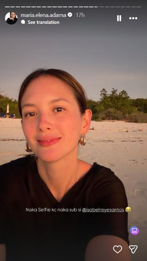 The actress also shared a sunset selfie, playfully noting that Isabel had taken over babysitting duties at that moment. “Naka Selfie kasi naka sub si @isabelreyessantos,” Ellen wrote.