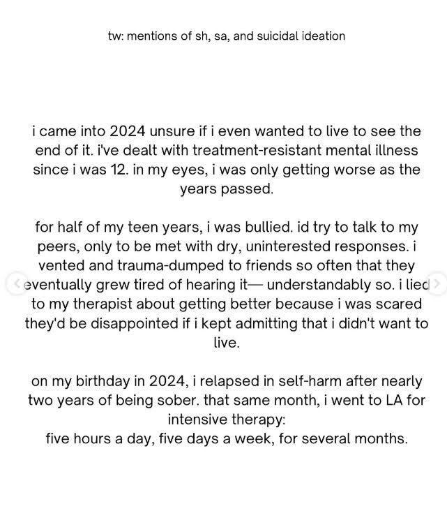 On Instagram, the Sparkle artist shared a 2024 photo dump and a lengthy yet inspiring story about her mental health journey last year.