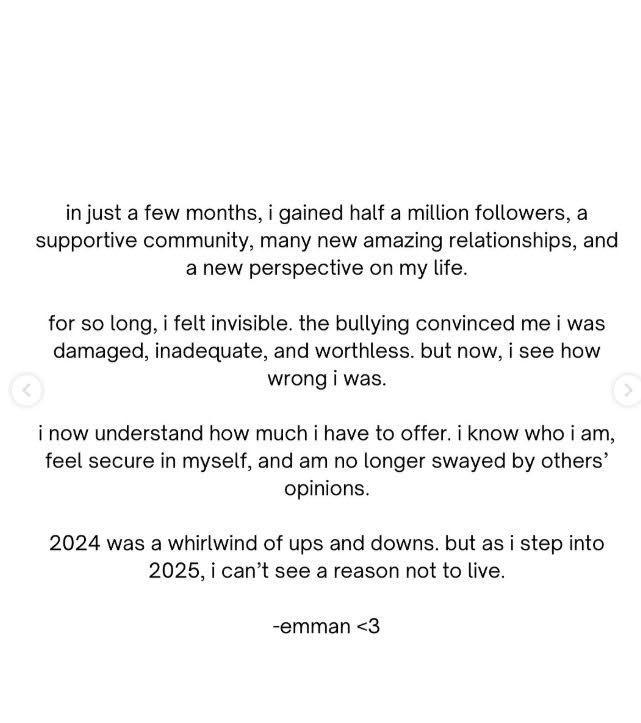 After sharing pieces of her life in TikTok, Emman gained followers and welcomed new healthy relationships after feeling "invisible, damaged, inadequate, and worthless."