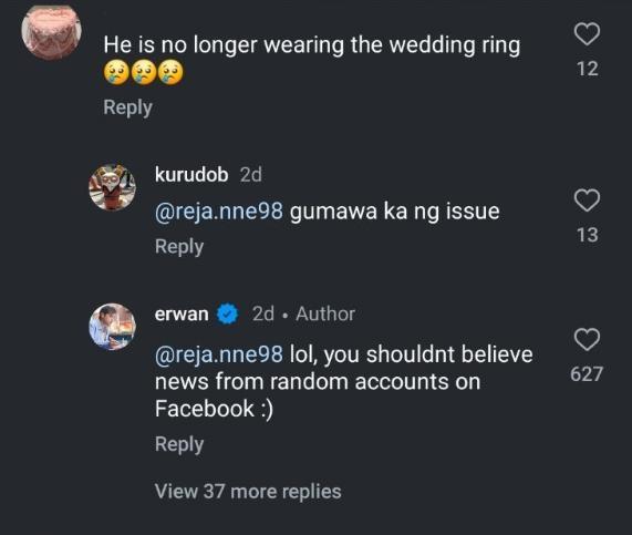 Erwan Heussaff responds to a netizen who noticed that he's not wearing his wedding ring.
