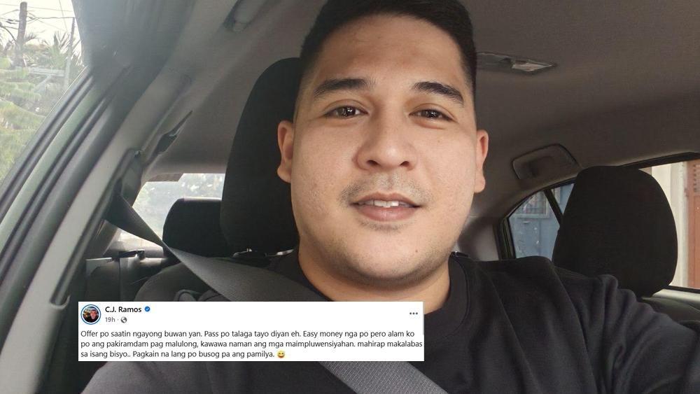 In a Facebook post, former child star and now content creator CJ Ramos shared his refusal of the consecutive offers he received this month of April to promote online gambling.