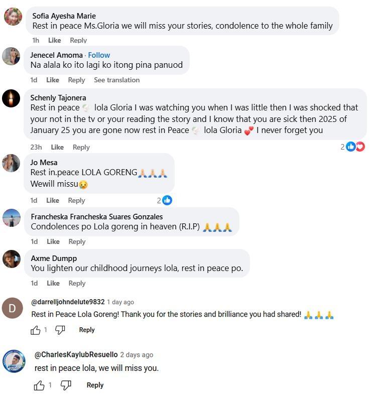Sabi ng isang netizen, “Rest in peace Lola Goreng. I was watching you when I was little.”