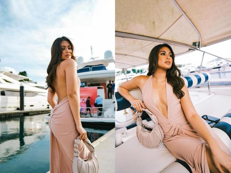 The actress was spotted at the sunset yacht cruise in Sentosa for the launch of Tumi's Asra bag. She was joined by her fellow Filipina actress Sarah Lahbati.