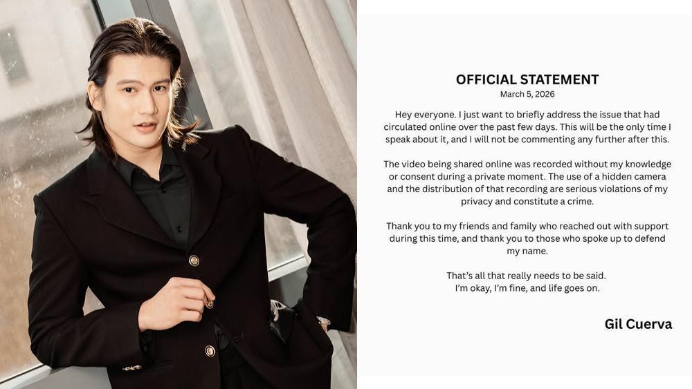 Before Gil's official statement, his former girlfriend, Kapuso actress Lexi Gonzales, had already taken to social media to defend him, calling the actions of those spreading the video “repulsive” and “malicious.”