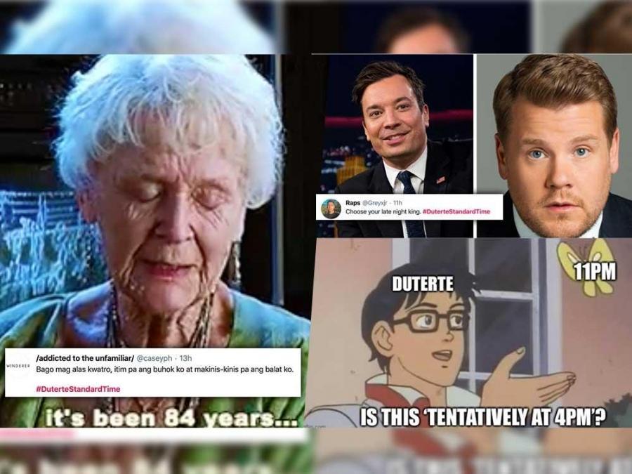 Kung nag-alarm ka man ng 4pm o naghintay hanggang 12 midnight, 'di pa rin maiiwasan ng ilang netizens na gumawa ng memes tungkol sa trending hashtag “#DuterteStandardTime”