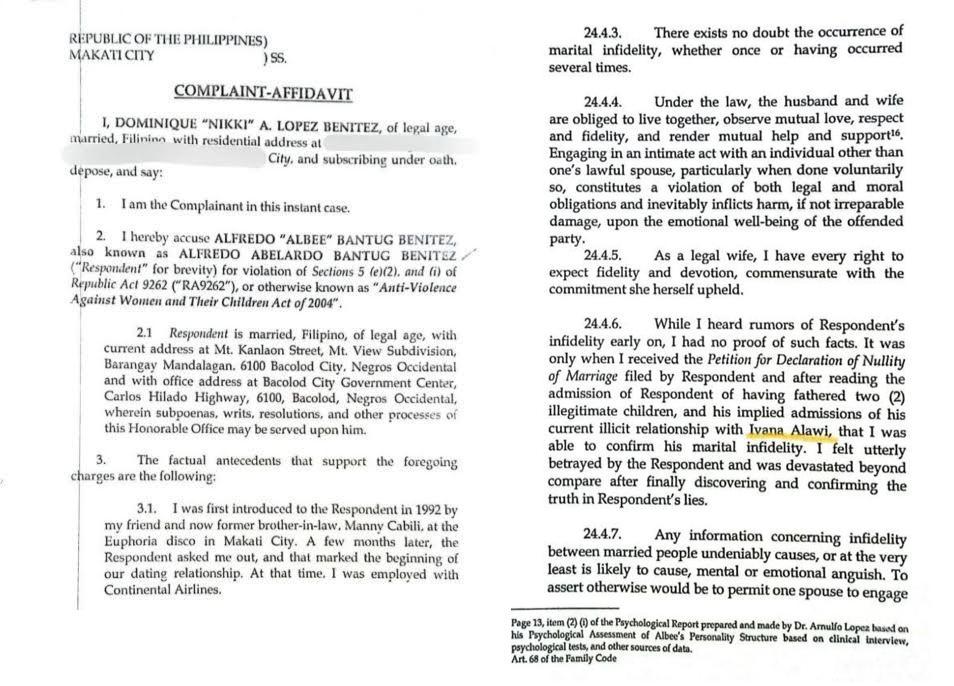 Kumalat online nitong Huwebes, May 29, ang bahagi ng reklamong paglabag diumano ni Albee sa Republic Act 9262 o ang “Anti-Violence Against Women and the Children Act of 2004.”