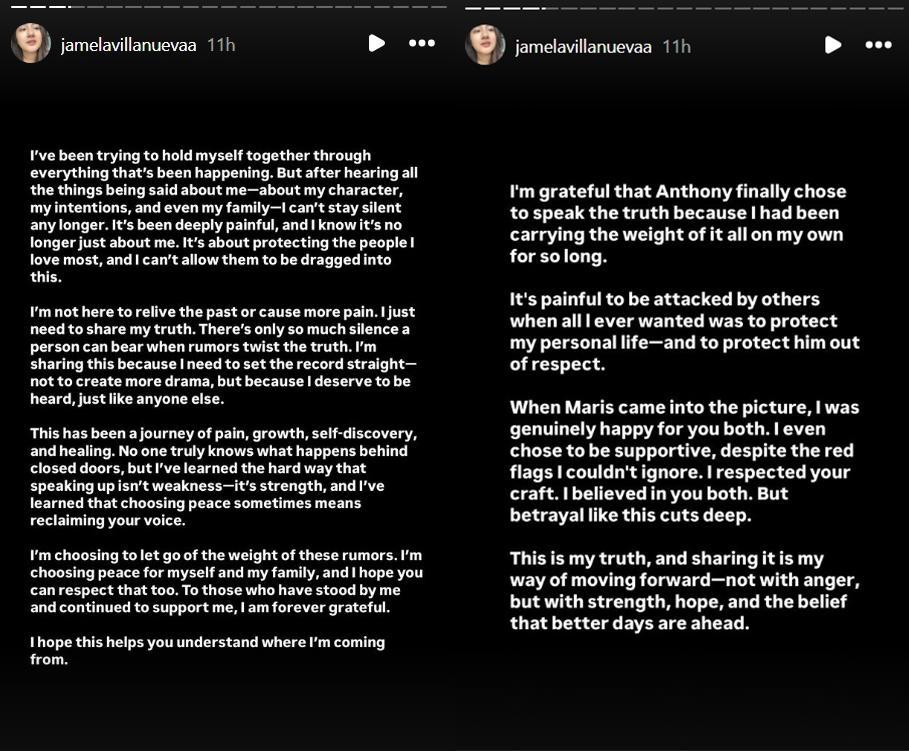 Jam has uploaded a series of stories about the alleged affair of Maris Racal and Anthony.