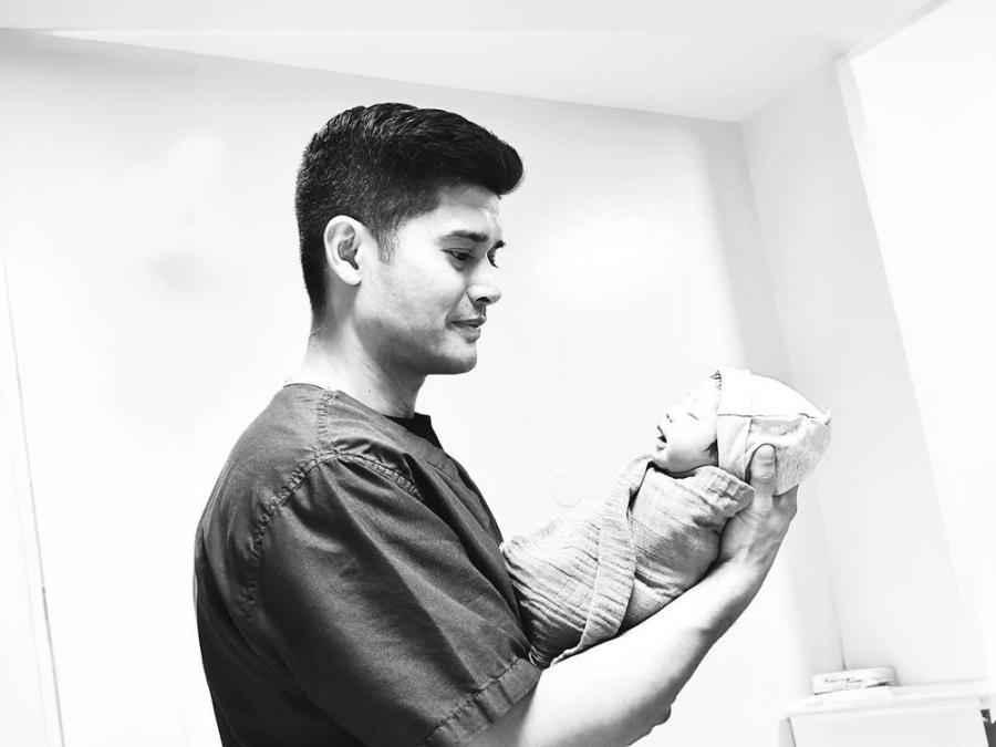 In an Instagram post, the actor shared black and white photo of him holding his newborn baby, a son named Vittore.