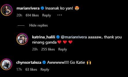 Kapuso Primetime Queen Marian Rivera proudly wrote, "Inaanak ko yan!" to which Katrina replied, "aaaaaw.. thank you ninang ganda" with heart emojis.