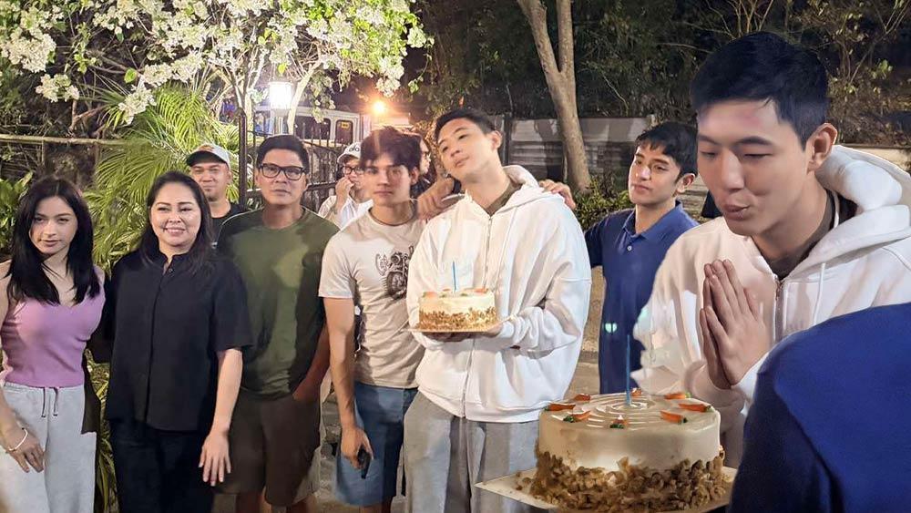 To mark his 33rd birthday, the cast and production prepared a cake and a small feast in between takes for the program.