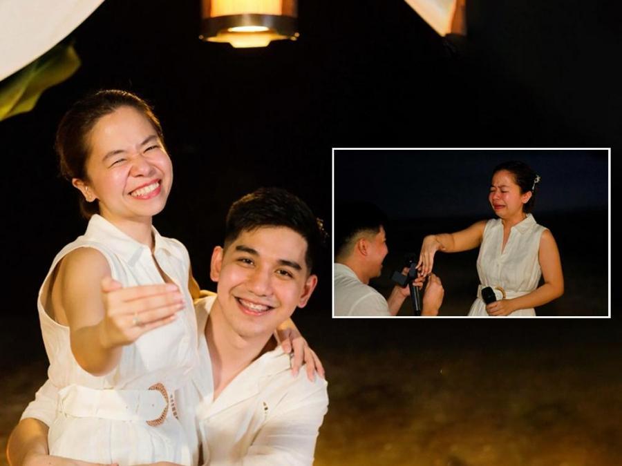 A quick browse on the carousel of photos would show Kiray Celis turning emotional as her boyfriend Stephan Estopia asking for her hand in marriage on bended knee. Both of their families were there to witness the beautiful moment that happened by the beach.