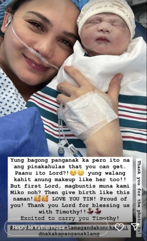 In her Instagram story, her older sister, Kathleen Hermosa, shared a photo of her right after giving birth to her sixth child Isaiah Timothy with husband Oyo Boy Sotto, where she appears to be still looking fresh without filter or makeup on.