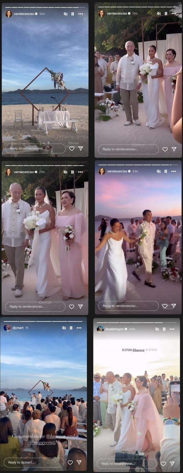 Laureen's friends, social media influencers Verniece Enciso-Dichaves and Lissa Kahayon uploaded a few highlights of the couple's intimate wedding. Based on the social media posts of several of their guests, the ceremony took place in Palawan.