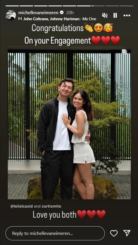 Meanwhile, Leila's mom, former beauty queen Michelle van Eimeren, took to her Instagram Story to greet the newly-engaged couple.