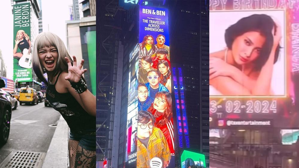 Over the years, Filipino artists have been featured in the famed billboard, either as part of a brand advertisement, buyouts by their fans, or because they earned a place on it for their work as artists.