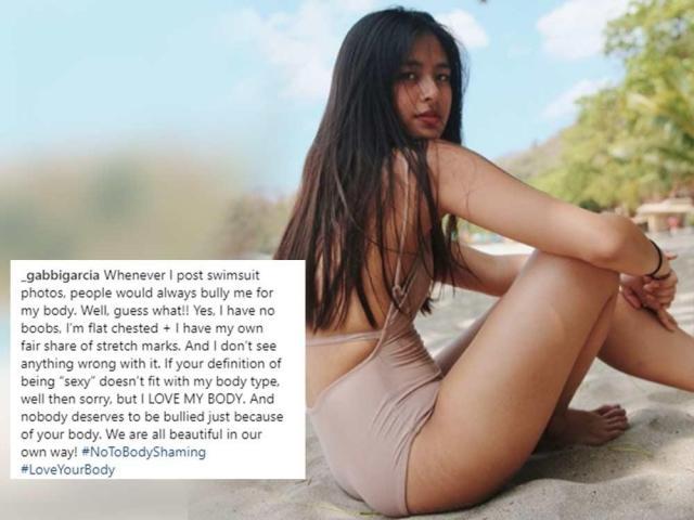 Kapuso primetime star Gabbi Garcia is campaigning to stop body shaming by promoting body positivity through her social media accounts. Check out some of the celebrity reactions to her unaltered bikini photo in this gallery.Kapuso primetime star Gabbi Garcia is campaigning to stop body shaming by promoting body positivity through her social media accounts. Check out some of the celebrity reactions to her unaltered bikini photo in this gallery.