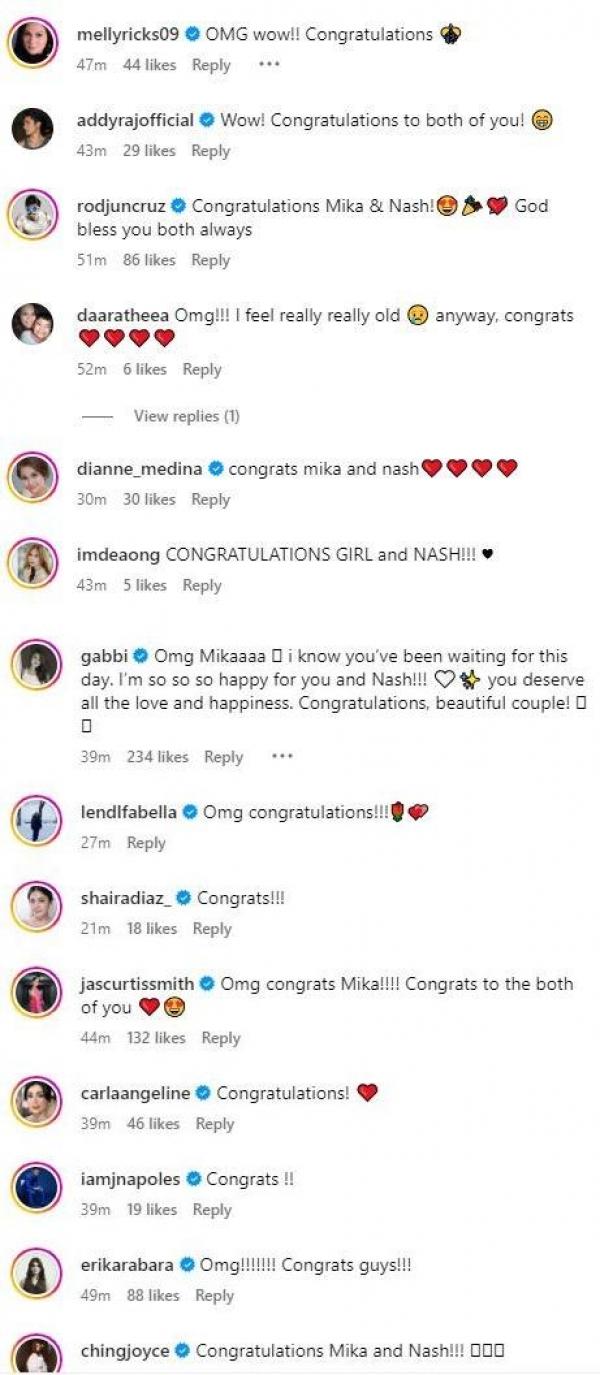 Agad namang napuno ng congratulatory messages ang post na ito ni Mika. Isa sa mga bumati ang Kapuso actress na si Gabbi Garcia.