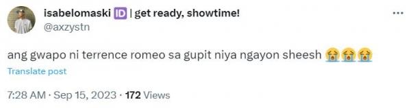 “New haircut na ang aking Golden boy!! @tbvromeo Parang bumalik ang hs fangirl self ko. Ily since 2013 #TerrenceRomeo,” sulat sa post ng isang fan.
