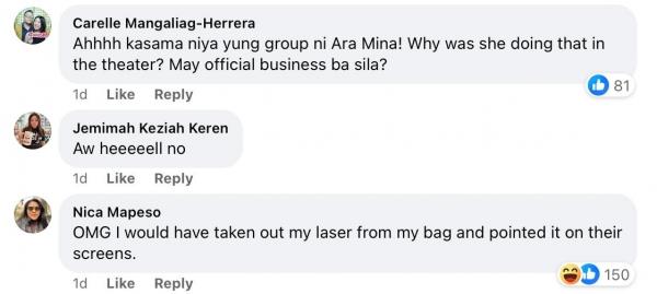 "Sabihin na natin that these people really don't have theatre etiquette coz clearly, none talaga! This is where I blame PETAs ushers! You're not there to watch the show. May trabaho kayo! Bakit hindi niyo pinigilan? Bakit hindi niyo inisip the audience around these uneducated people?! I paid to see the show not fuckin gadgets!"