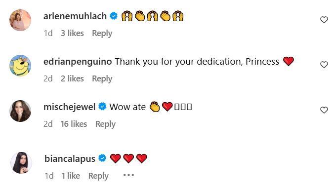 Some celebrities positively reacted to what Princess posted including My Father's Wife actress Arlene Muhlach and Bianca Lapus.