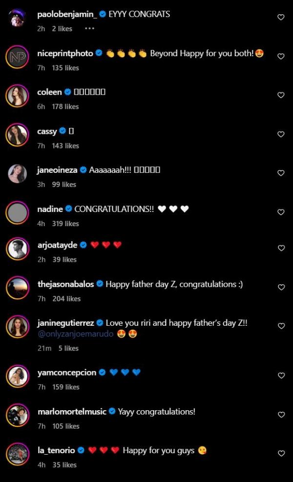 Other stars, such as Ria's brother, Arjo Atayde, Actress Yam Concepcion, and Coleen Garcia sent heart emojis to the couple.