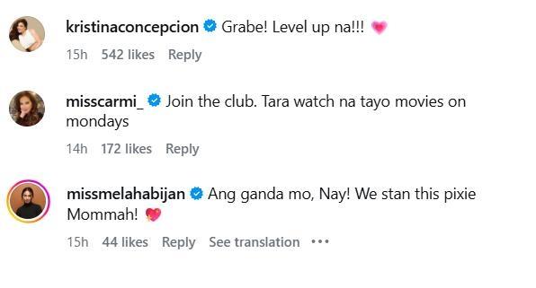 “Ang ganda mo, Nay! We stan this pixie Mommah!” Mela commented.