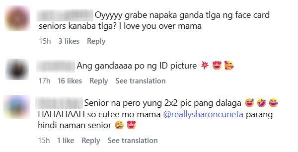 “Senior na pero yung 2x2 pic pang dalaga. So cutee mo mama @reallysharoncuneta parang hindi naman senior,” a netizen wrote.