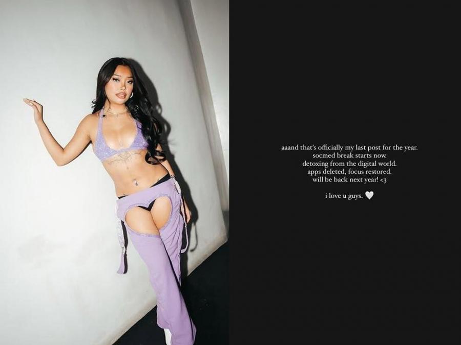 The 21-year-old singer-songwriter wrote on her Instagram story, "[A]and that's officially my last post for the year. Socmed break starts now. Detoxing from the digital world. Apps deleted, focus restored. Will be back next year! I love you guys."