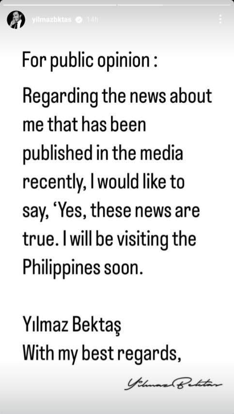 On Instagram Stories, Yilmaz released a brief statement confirming the recent news about him circulating in the media.