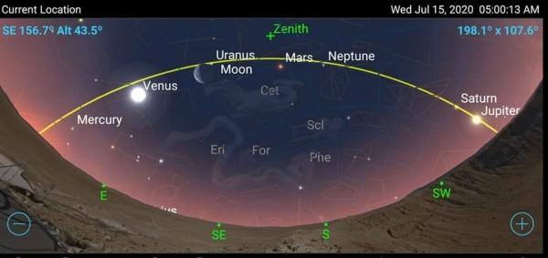 According to the Philippine Astronomical Society (PAS), naked eye planets Jupiter, Saturn, Mars, Venus, and Mercury will be visible at around 5 a.m. until July 20, given that the skies are clear and there are no obstructions from your viewpoint.