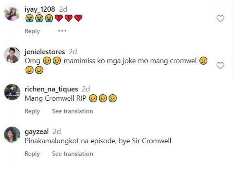 Sa latest episode ng serye, ramdam ng mga manonood ang hinagpis nina Josa (Wilma Doesnt), Lyneth (Carmina Villarroel) at Analyn (Jillian Ward) nang malaman nila ang malungkot na balita na binawian na ng buhay si Cromwell (Ariel Villasanta).
