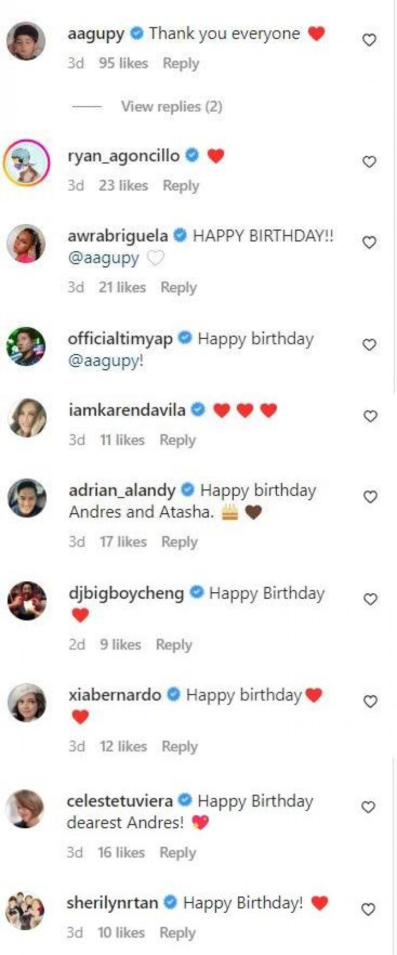 Andres replied to Charlene's heartwarming message and thanked everyone who greeted him.