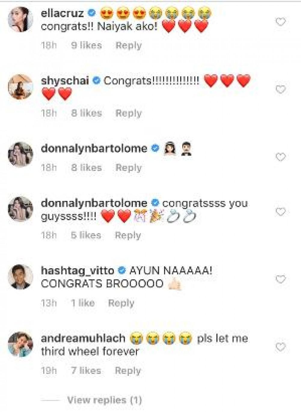 Several celebrities also congratulated the future Mr. and Mrs. Muhlach.
