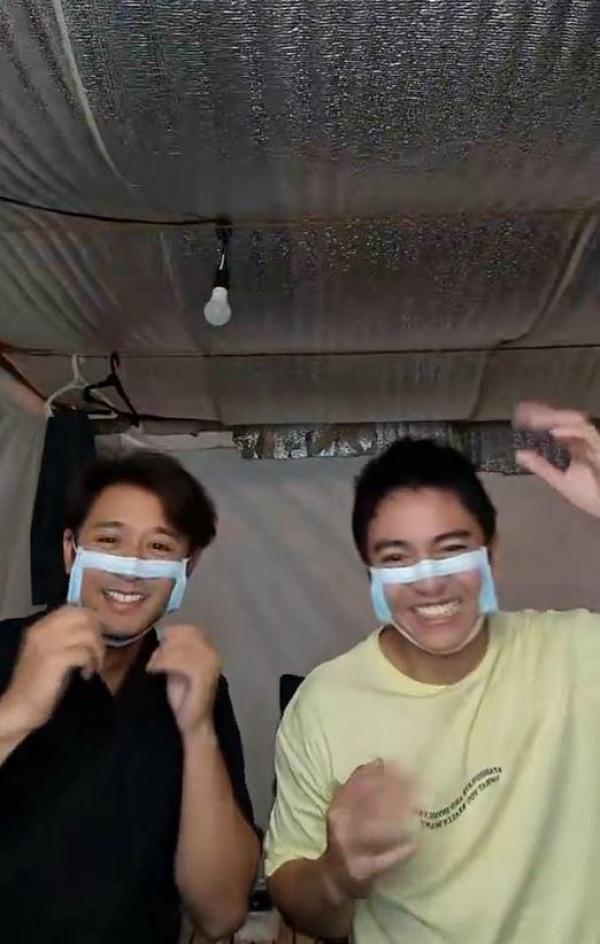 Mapapanood na nagsuot pa ng butas na facemasks ang dalawang aktor at sabay nilang ginaya ang ginagawa ng ilang content creators.