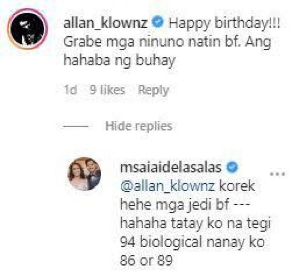 Her fellow Kapuso comedian commented on the post saying, "Happy birthday!!! Grabe mga ninuno natin bf. Ang hahaba ng buhay."
