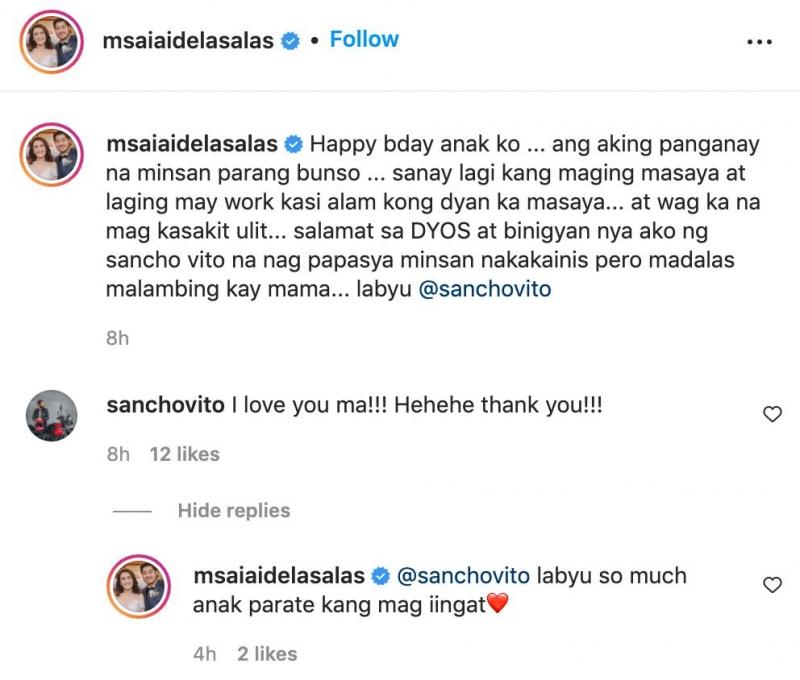 Agad namang nagbigay ng reaksyon si Sancho sa post na ito ng kanyang ina na si Aiai.