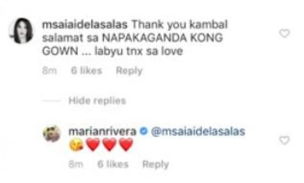 The Comedy Queen of the Philippines immediately replied to Marian's IG post and thanked her for her fabulous wedding dress.